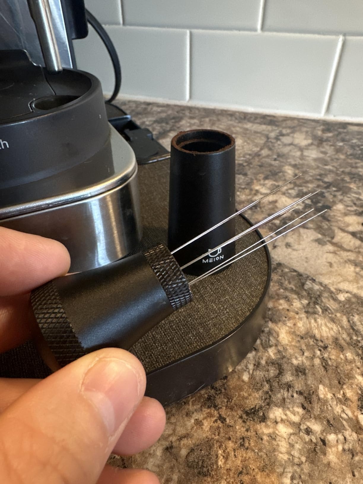 The multi-layer T700SC version with 7 needles and stand is fantastic – the fine needles distribute grounds uniformly, eliminating channeling in my double shots. Matte black aluminum looks sleek, and the replaceable needles keep it performing like new. Easy to use and clean. My wife (who's picky about coffee) notices the difference in taste. Best WDT tool we've tried – perfect for our morning routine.